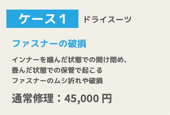 保証アップグレードなら、通常の製品保証では対象外となる過失による損傷、防水ファスナー