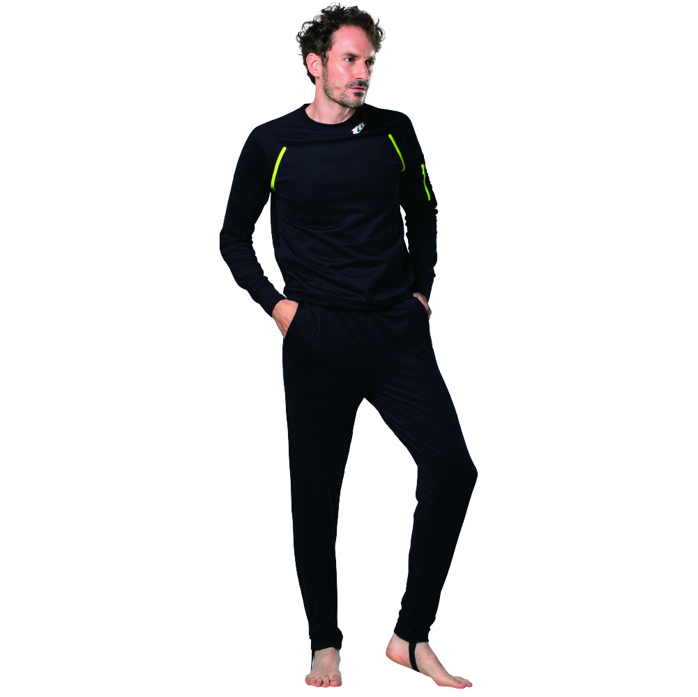 左腕には、ロッカーのカギなどの貴重品を収納できるポケットを配置したほか、ボトムスの裾に取り付けたゴムひもは、ドライスーツを着用する際に煩わしい裾のまくれ上りを防ぎます。