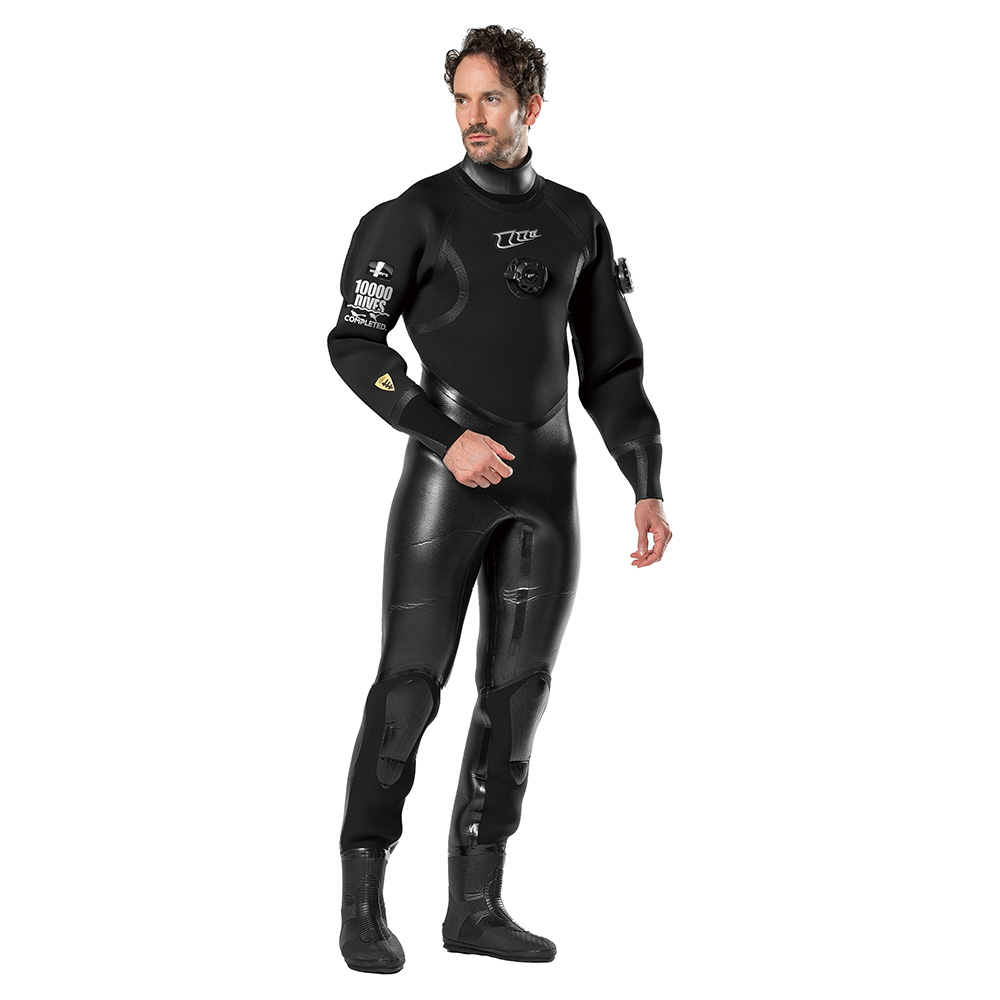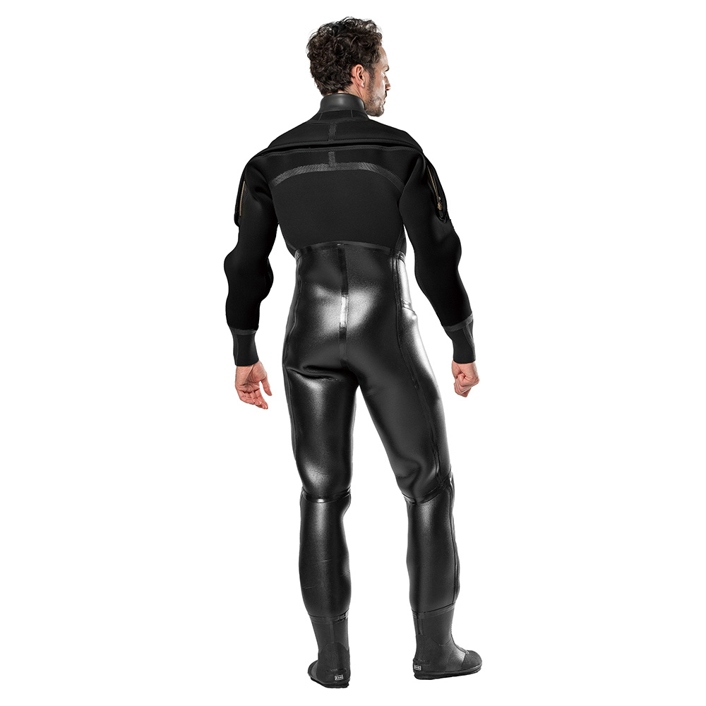 ラジアルとジャージをバランスよく配置し、重くなりすぎないドライスーツに仕上げています。