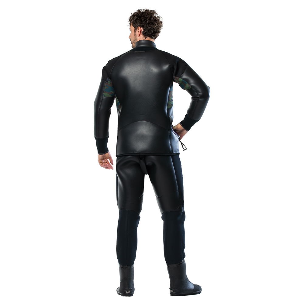 肩部に耐摩耗性ジャージを使用。BCD ストラップとの擦れから守り、スーツの劣化を防ぎます。