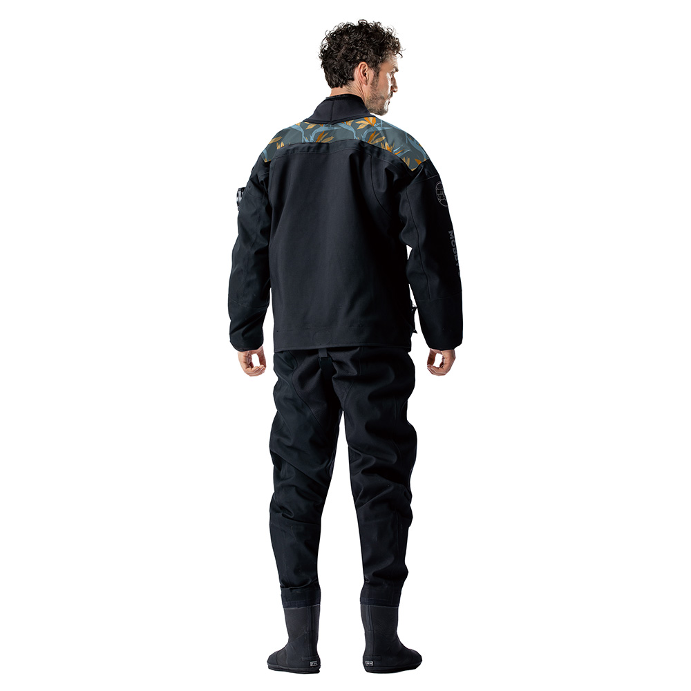 柔らかい防水ジップ・YKK製AQUASEAL®を前身ごろに配置することで、一人での着脱を可能にしています。