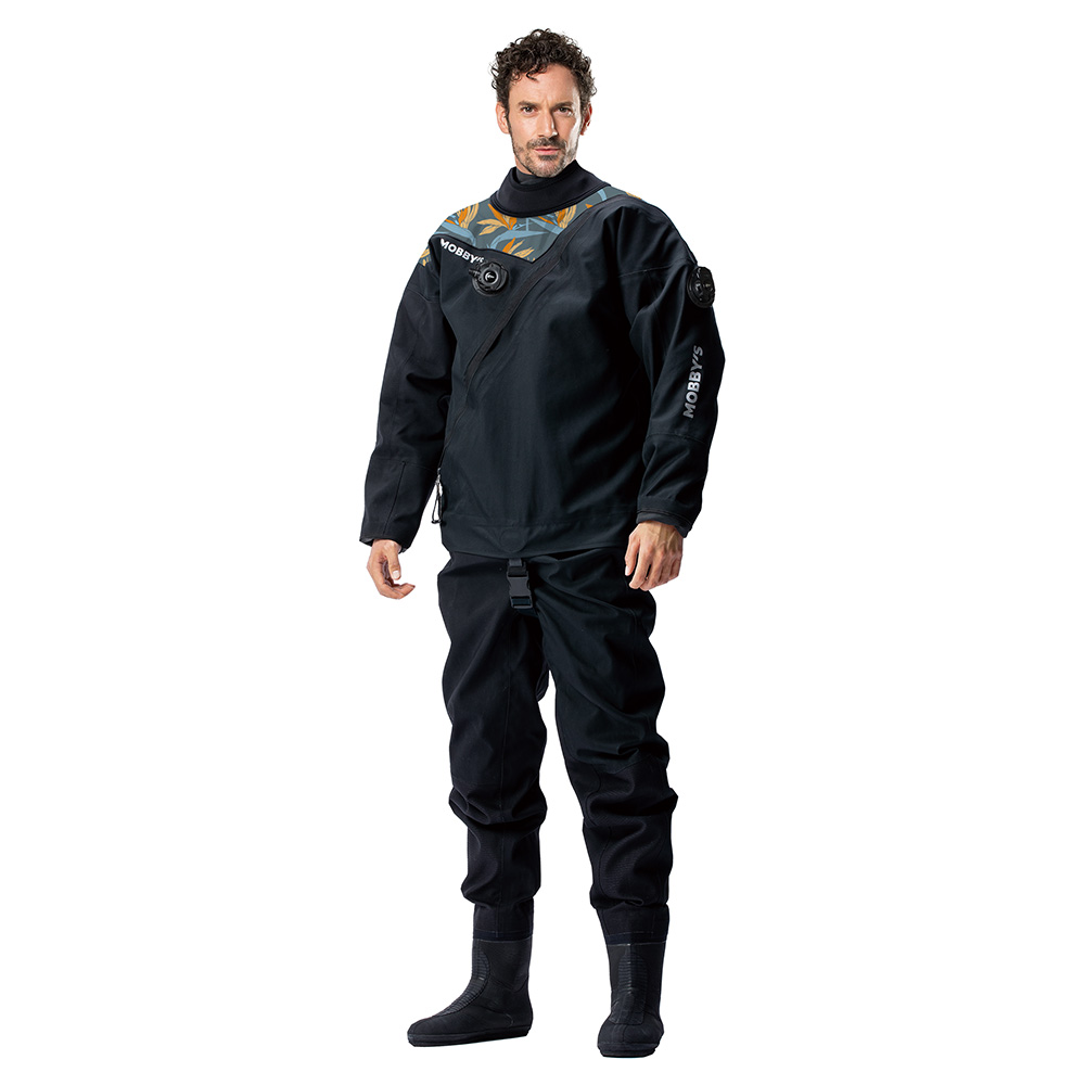 左肩からウエスト部へと斜めに体を横切るジッパーは、YKK製AQUASEAL®を採用。一人で着脱ができ、腕の曲げ伸ばしがしやすく、機動性にも優れています。腰のテレスコープ構造はスーツの全長を一時的に伸ばすことが可能です。着脱の際は股掛けのバックルを外し、テレスコープ部分を伸ばしてご使用いただくことで上半身の着脱性が格段によくなります。潜る際は伸ばしたテレスコープ部分を折り返し、股掛けのバックルを留めてからご利用ください。