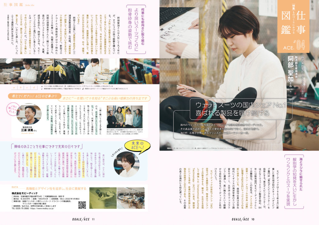 ブログ【MOBBY’S】宮城県事業の広報誌「オガーレ!ACE」の取材を受けました 宮城県事業の広報誌「オガーレ!ACE」内、特集・ものづくりにかける仕事図鑑にて弊社スタッフが取材を受けました。ものづくり産業広報誌「オガーレ!ACE」についてはこちら: 2022.04.13NEWSお知らせブログ